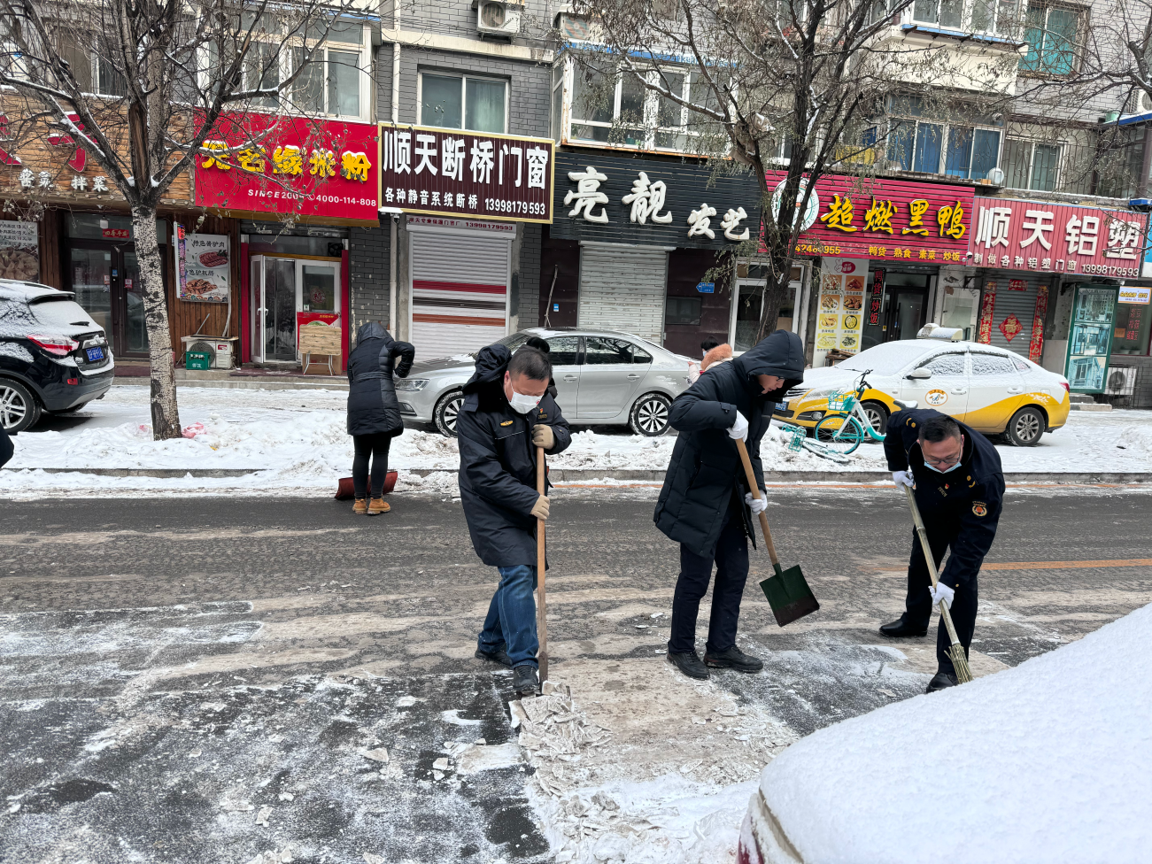12月14日以来,我市迎来了大范围降雪,根据气象预测预计未来我市还将持续面临低温极端天气,路面积雪结冰,为广大市民出行带来了不便。为维护正常生产生活秩序,保障广大群众出行安全,市文明办在全市组织开展“共爱一座城,齐守一个家”清冰除雪志愿行动。市局全员出动清除背街小巷残留积雪。